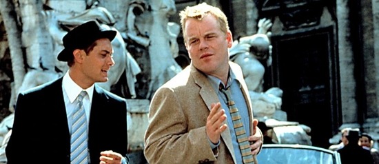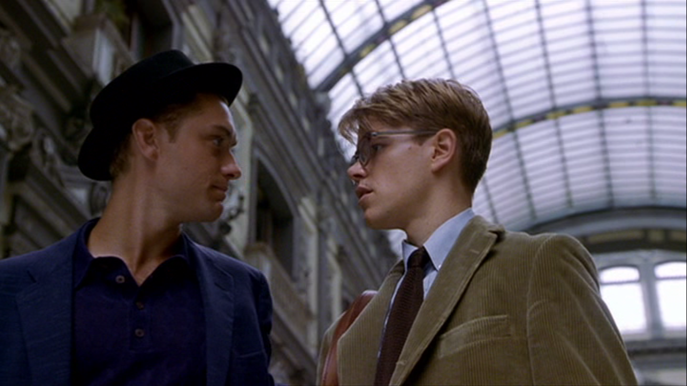 The opposite is true of Riviera playboy Dickie Greeenleafe. He is all sharp tailoring and bold colours. Any time the duo are on screen together early in the film the contrast is obvious.