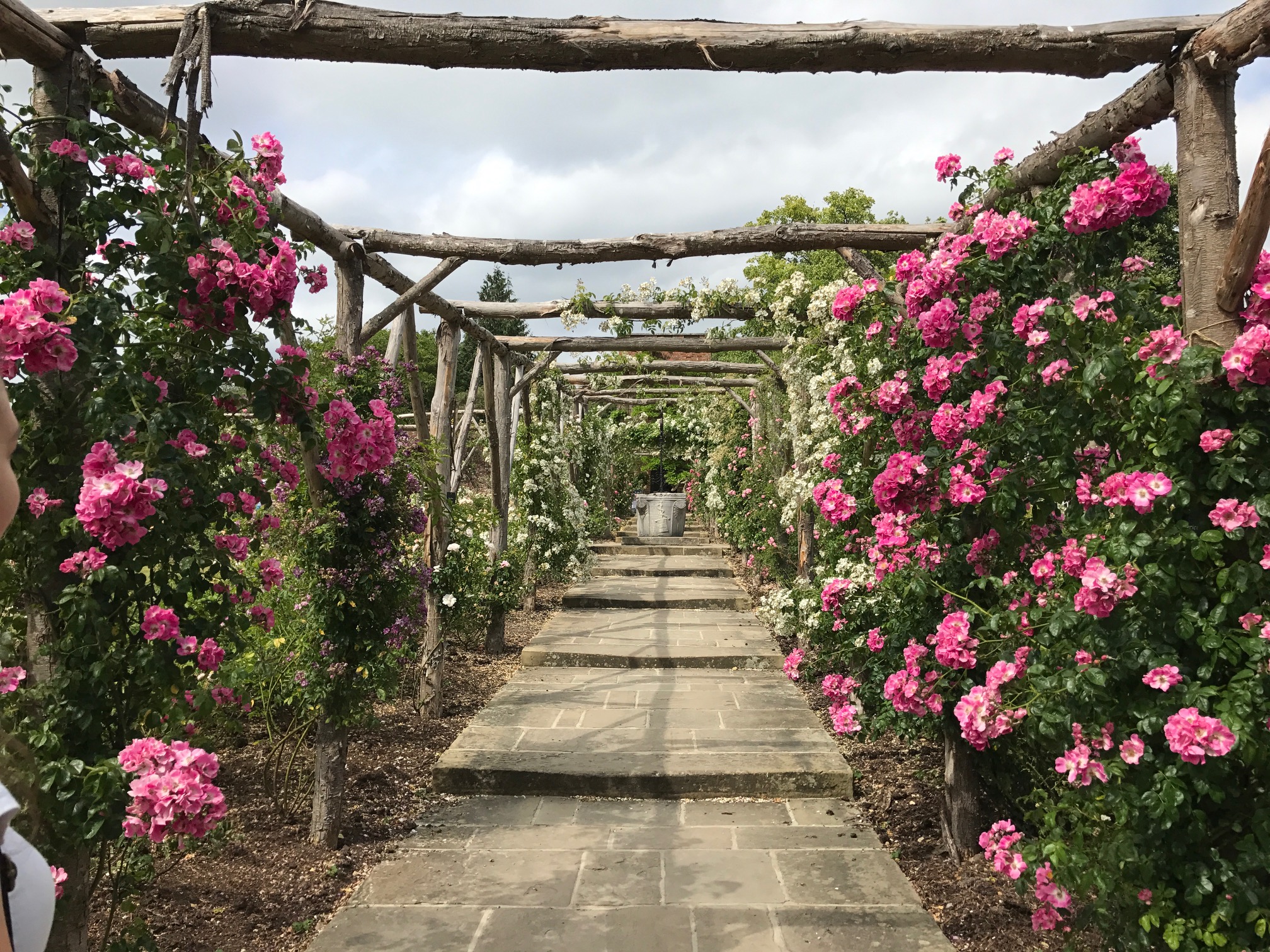 After taking in the landscape we headed along the graveled paths, past stone statues and into the immaculately maintained gardens. Here pristinely laid out flowerbeds are navigated by walkways overhung with climbing plants. Benches in flower-laden alcoves create the perfect spot for a quiet moment to appreciate the beauty and the work which has gone into it.