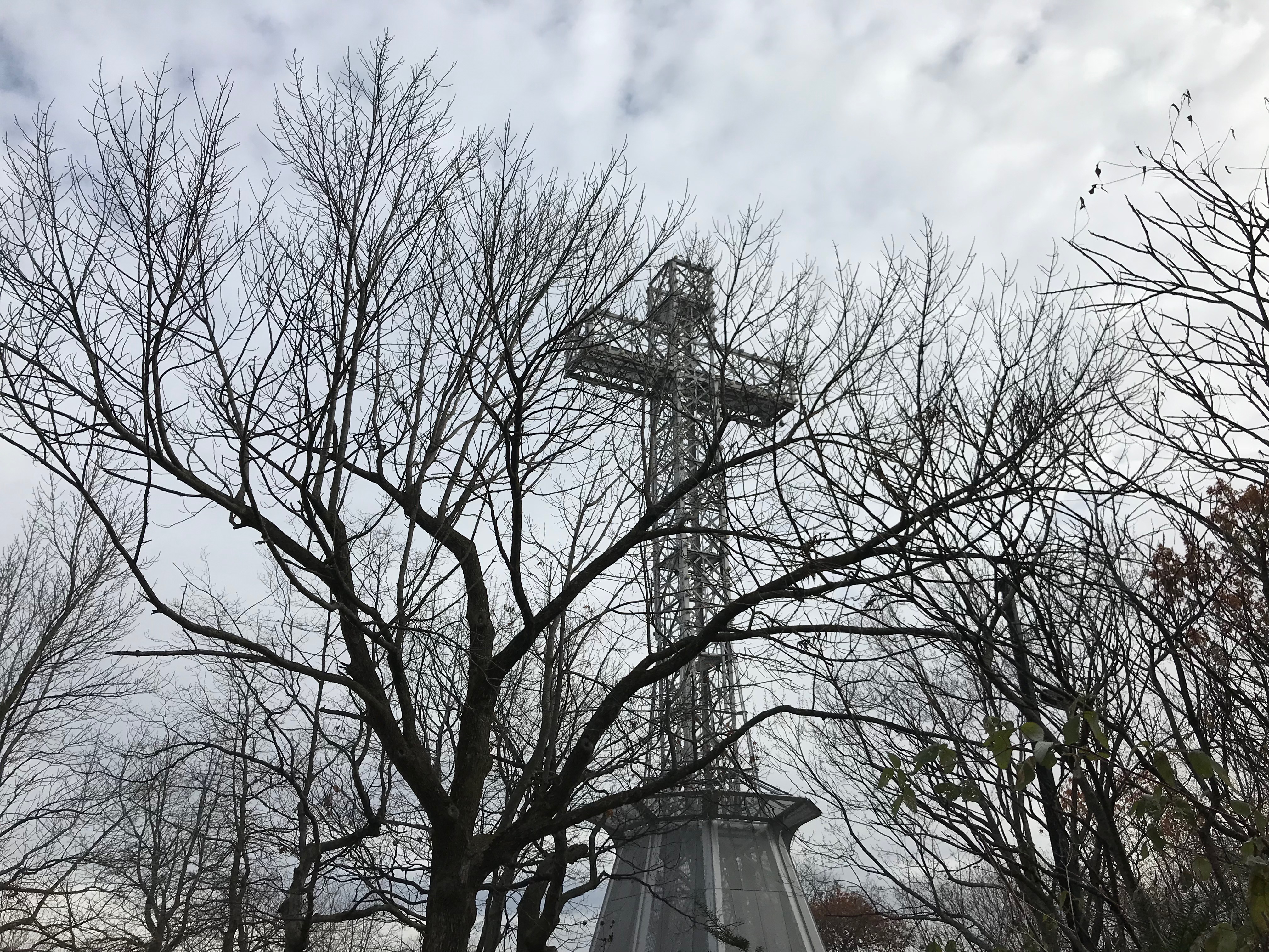 If you’re wondering, yes that is a giant metal cross with lightbulbs on.