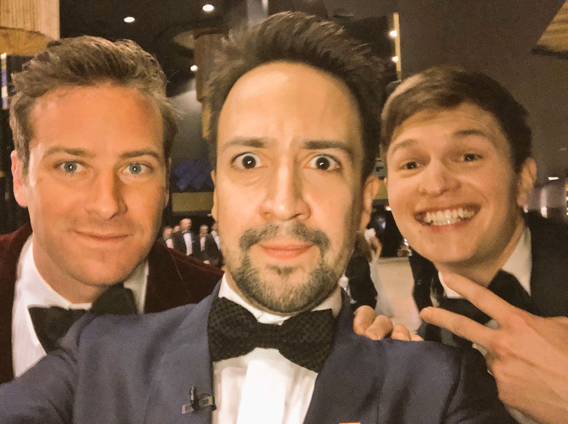 Oscar statue photo from The Academy on Twitter, selfie from Lin-Manuel Miranda’s Twitter account.