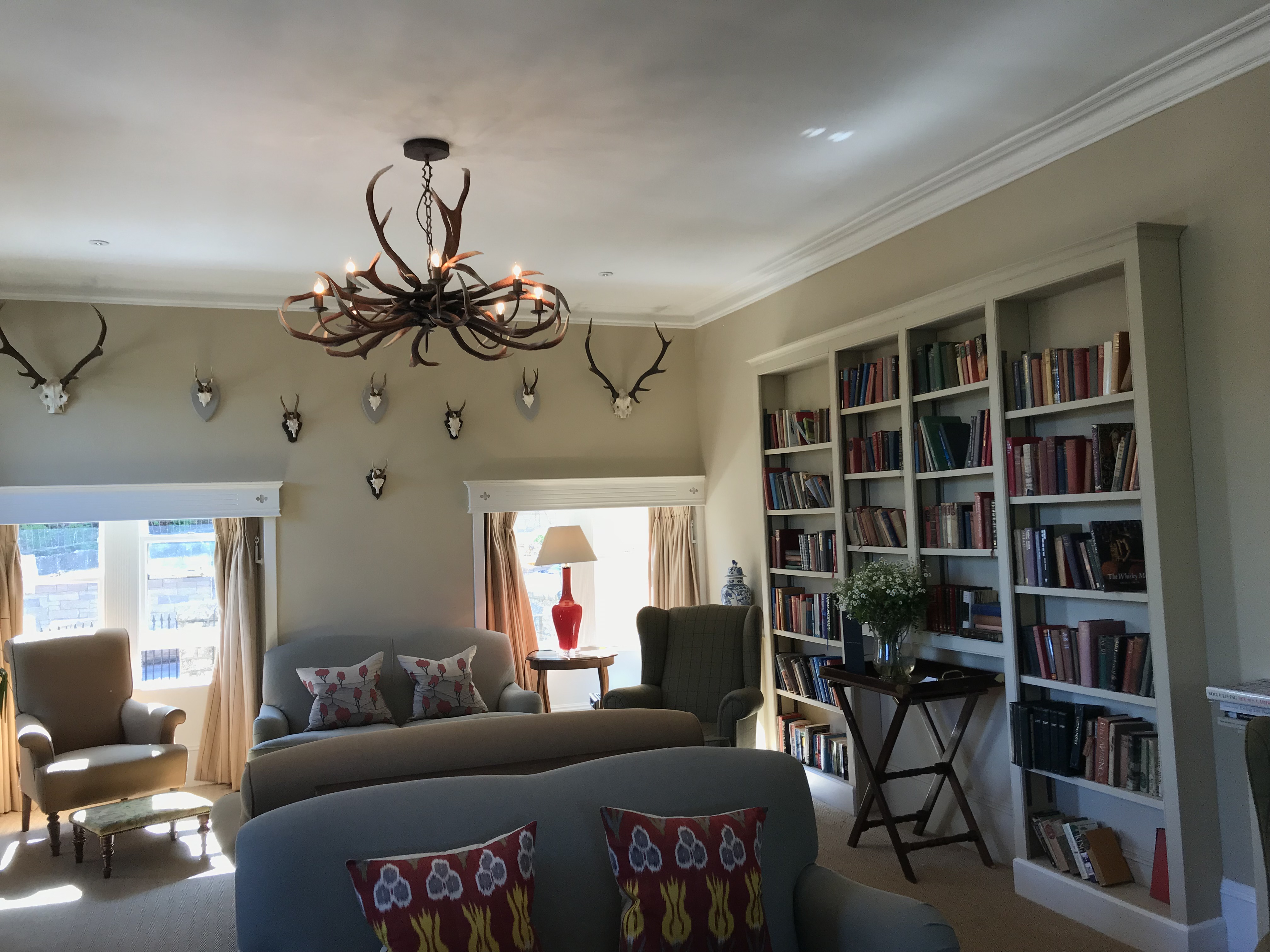 It is a delightful little boutique place with decor which calls to mind a high-class mountain lodge, with wood-panelled bars and books lining the walls, along with these brilliant dog drawings.