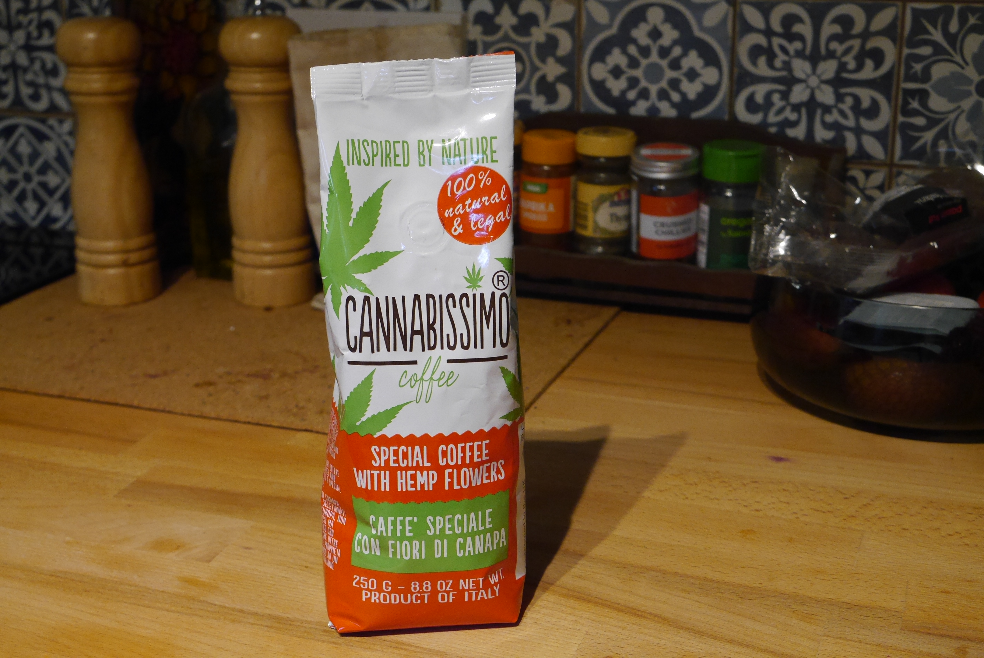 Don’t get hung up or – or over excited by – the name, Cannabissimo is a hemp infused coffee made in Southern Italy by blending roasted coffee beans with ground organic hemp.